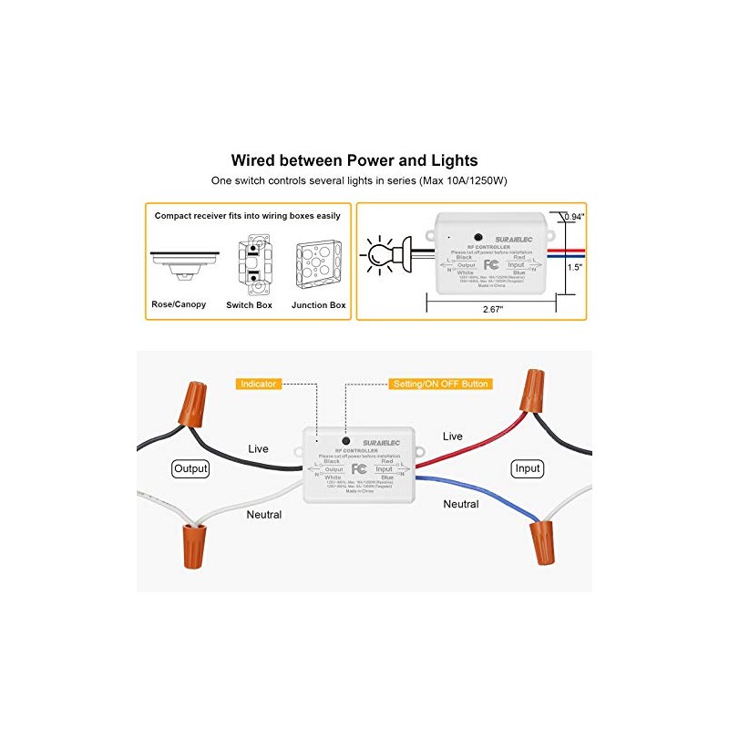- Compatibility: Compatible with Suraielec wireless RF remote control switch series only
