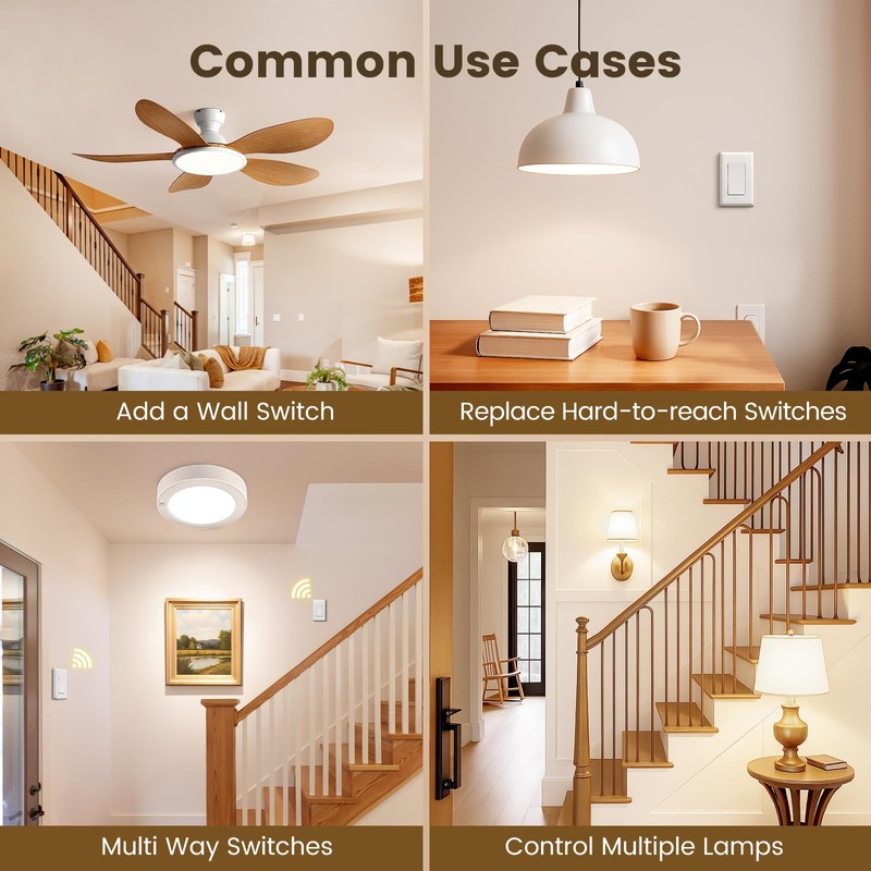 - Customizable and Expandable Setup: Wireless light switch kit supports programming of multiple switches and receivers; create 3-way or 4-way wireless switch setups; remote switch can control several devices or be shared across rooms