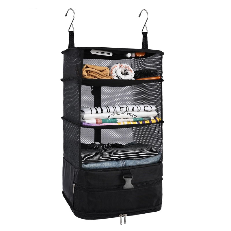 Surblue Travel Storage Bag For Men/Women With Hook Hanging travel cosmetic bagWe use durable materials, light and breathable, and can be easily put in a suitcase when traveling. When not in use, it can be folded and placed compactly without taking up space.After the suspension is unfolded, there are three interlayers with mesh protection, and there is a storage space with all-round zippers underneath, which can accommodate the necessary daily necessities, clothing, cosmetics and electronic accessories.There is a grabbing design on the top, you can directly store the items in the integrated storage space before traveling, and then take out the hanging sorting after arrival.With its stylish and convenient design, it is not only easy to organize, carry and clean, it has good breathability, which saves time and is convenient, so it is the best gift for partners, friends, and parents.