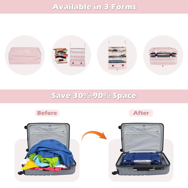 - Foldable design: When traveling or on a business trip, Double-sided zipper that can be opened easily,you can put your luggage in and fold it up to facilitate the organization of your luggage. You can also use a strong stainless steel hook to hang it in the wardrobe or bathroom