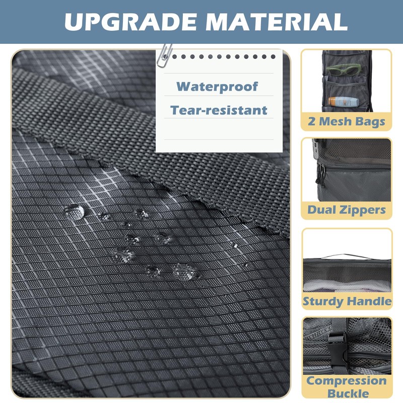 - Premium Material: The pack gear hanging suitcase is made of durable polyester material, which is also waterproof, withstand prolonged use and weight loads, and is easy to clean.