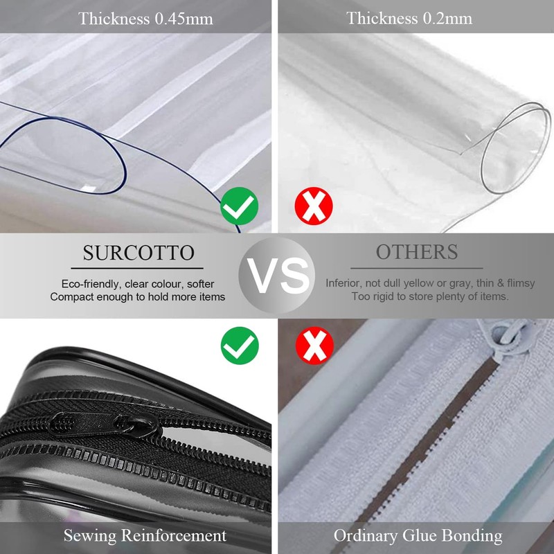 - 🌟SURCOTTO CLEAR PENCIL CASE: Our 2-piece pencil case is made of premium transparent PVC material, allowing you to easily see your stationery and find it. It is strong, durable and tear-resistant.