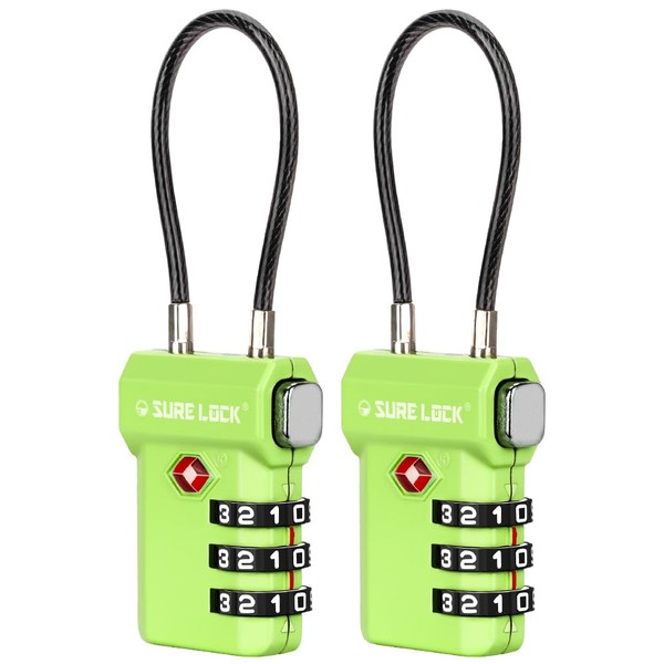 SURE LOCK TSA Approved Luggage Locks, Open Alert, Easy Read Dials, Travel Luggage Locks for Suitcase, Baggage Locks. (Green 2 Pack)