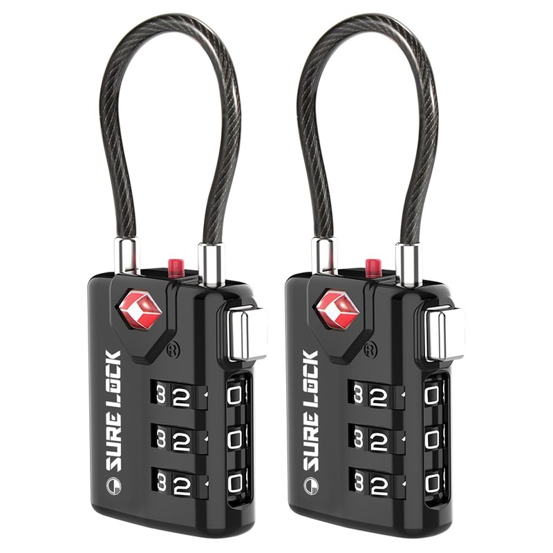 - A SECURE LOCK WHICH WORKS WITH NEARLY ANY KIND OF LUGGAGE. Cable locks can secure luggage which steel shackle locks can not. Pellican cases, gun cases, equipment cases, etc. can all be locked easily and safely with our flexible cable. At an ideal lenght of 4 inches from end to end and a closed lenght of 1.6 inches, SureLock's cable is the ideal size for your travel security needs.