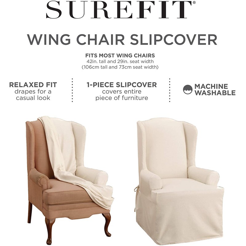 - STYLISH COMFORTABLE SLIPCOVER: SureFit makes it easy for you to dress up your favorite armchair with our beautiful crisp cotton relaxed fit slipcover.
