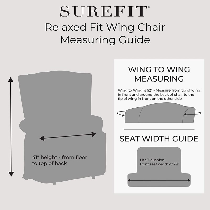 - DESIGNED WITH YOU IN MIND: Best fits wing chairs with 29-32” W (outside arm to outside arm), 36-45” Tall, 44-52” wing point to point (measure from 1 wing point around the back to other wing point), form fit arm up to 14”