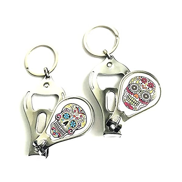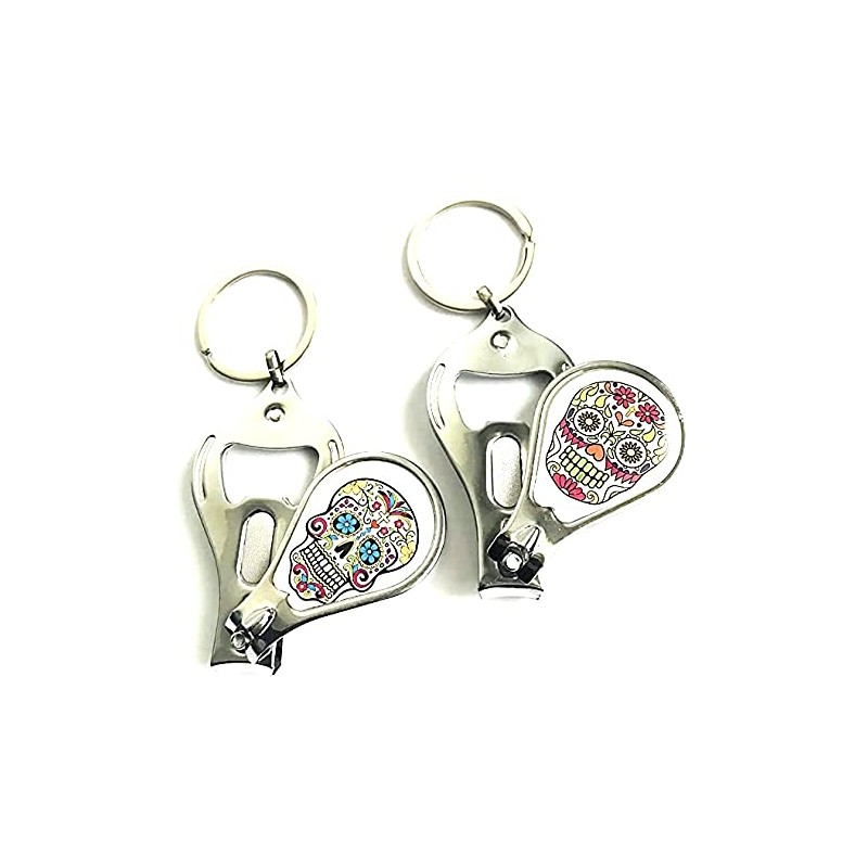 SUREG Sugar Skull Design Nail Clipper Bottle Opener Keychain 2 Pcs Set