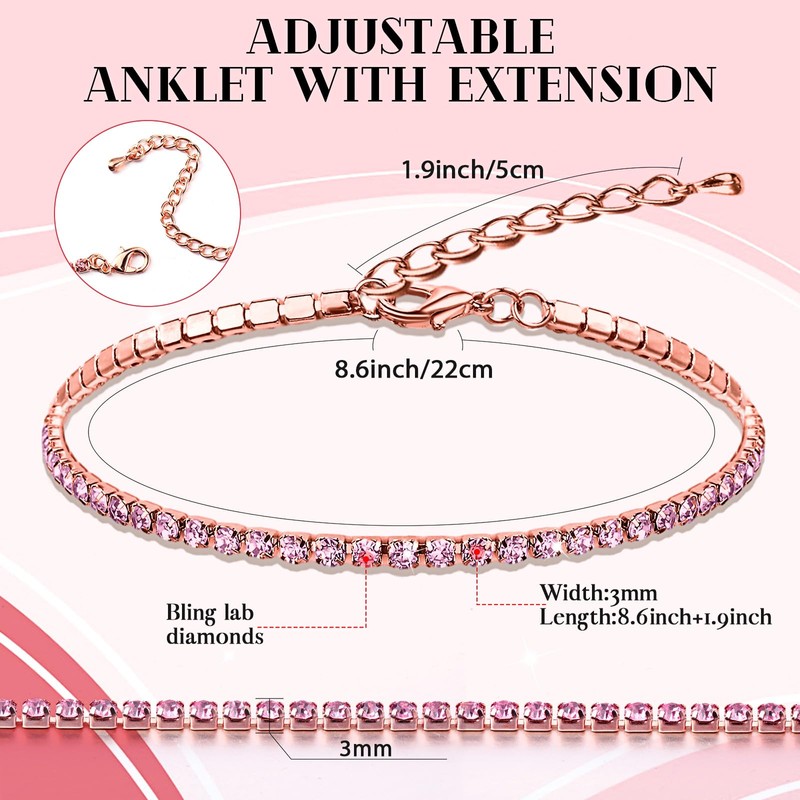 - Suitable Size: the link is about 9 inches long, and about 0.31 inches wide, suitable for most women; The tennis anklet is 8.6 inches long, equipped with an 1.9 inch extension chain, which can be adjusted to match your needs