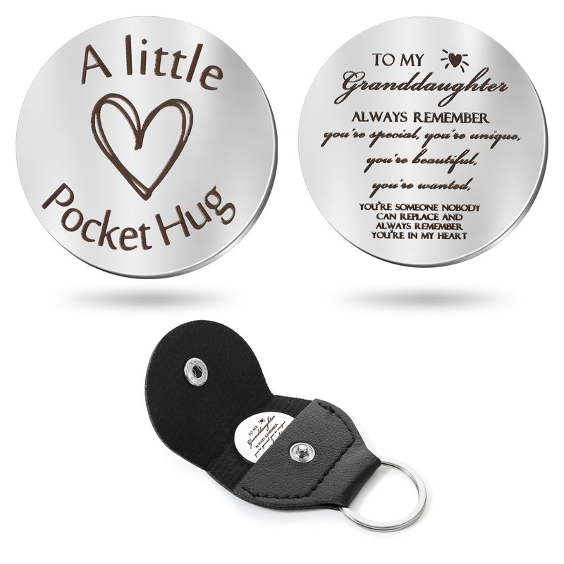 Sureio Pocket Hug Token Long Distance Relationship Keepsake Stainless Steel Double Sided Inspirational Gift with Keychain (To Granddaughter)