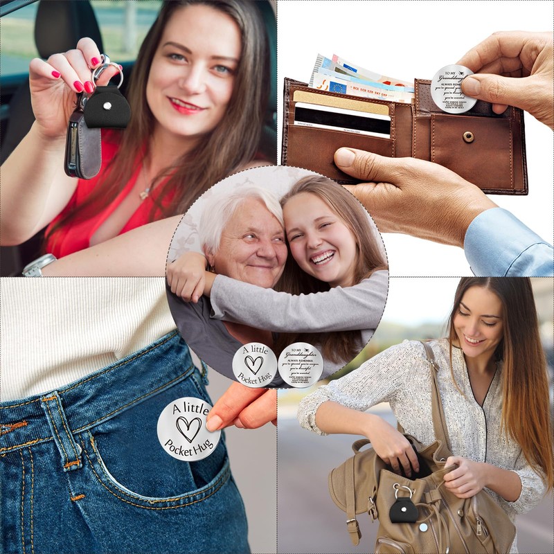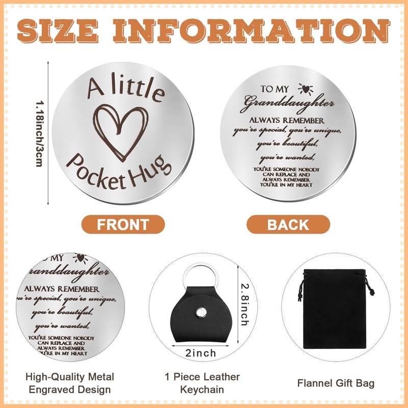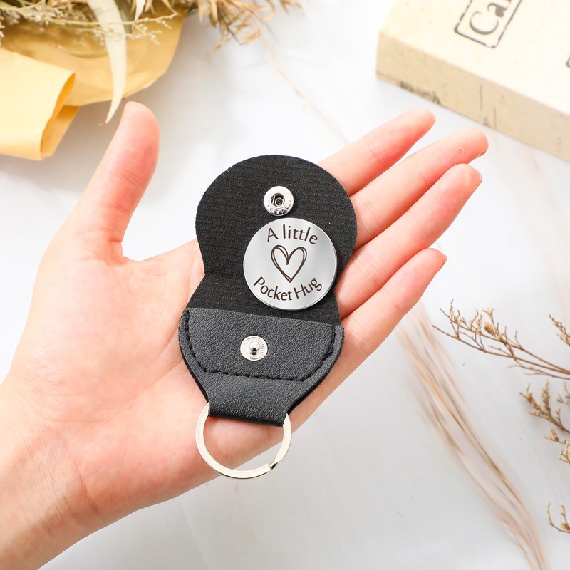 - Delicate combination: you will receive 1 piece of stainless steel pocket hug token and a piece of PU leather keychain, the package also comes with 1 bag for you to store them well and package them as gifts