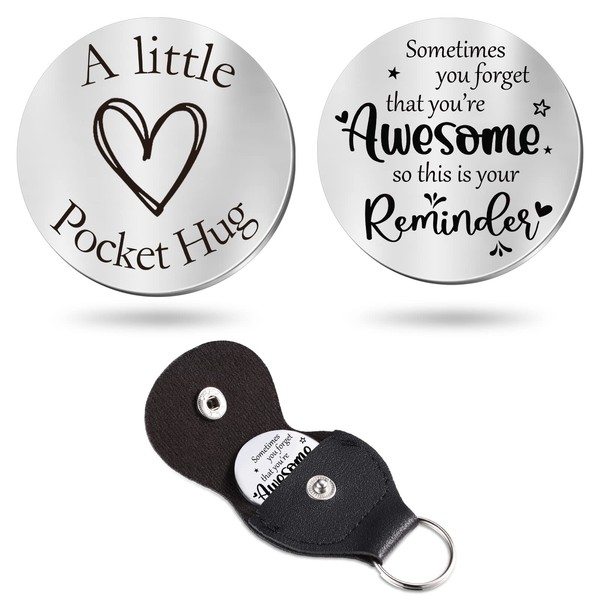 - Delicate combination: you will receive 1 piece of stainless steel pocket hug token and a piece of PU leather keychain, the package also comes with 1 bag for you to store them well and package them as gifts