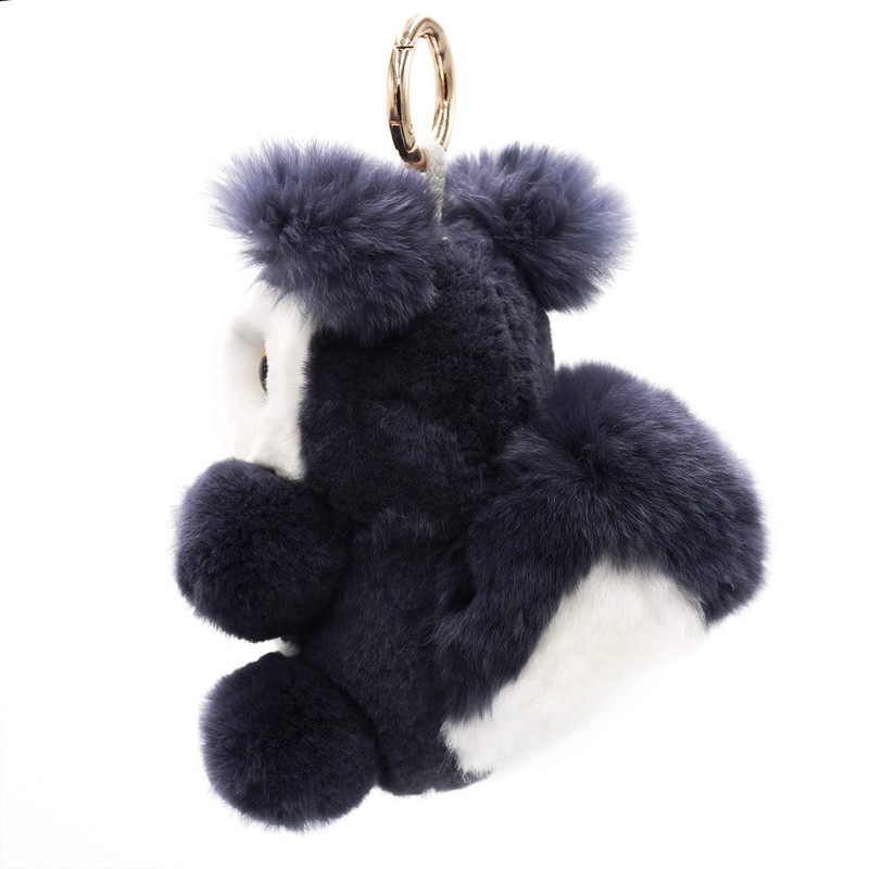 surell - Genuine Rex Rabbit Fur Pom Squirrel Keychain - Cute Chipmunk Bag Beach Purse Charm - Whimsical Forest Animal Lover's Pocketbook Accessory Key Chain Fob (Grey, White)