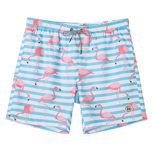 SURF CUZ Mens Swim Trunks 7" Swimming Trunks with Mesh Liner Quick Dry Swim Shorts for Men Swimwear Bathing Suits Pockets,Flamingo Stripes,L