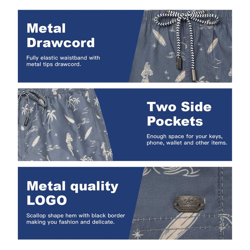 - Board Shorts with Mesh Lining: The swim shorts with soft mesh lining allows for maximum breathability so shorts don't balloon underwater. The durable mesh lining for extra support brings you comfort all day long. You won't feel tight or insecure in these no-chafing swimming trunks.