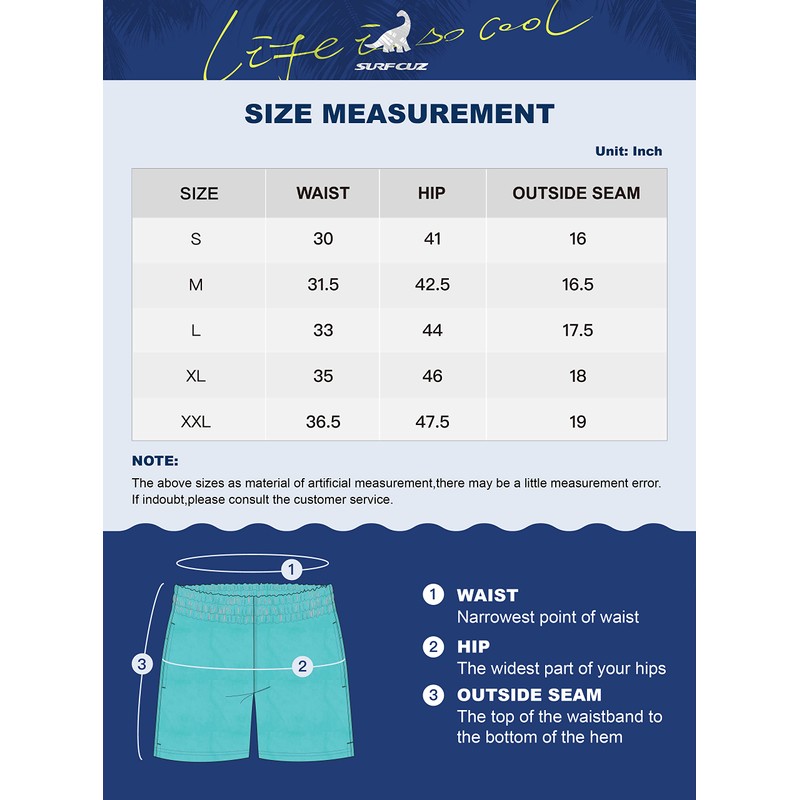 - Print Swim Shorts with Pockets: The mens swimwear have 2 slanted mesh pockets and 1 back flap velcro drain hole pocket. Back velcro pocket can store easy-to-fall items. The board shorts above knee length are available in US sizes S to XXL. Take only a few seconds to find your size according to size chart.