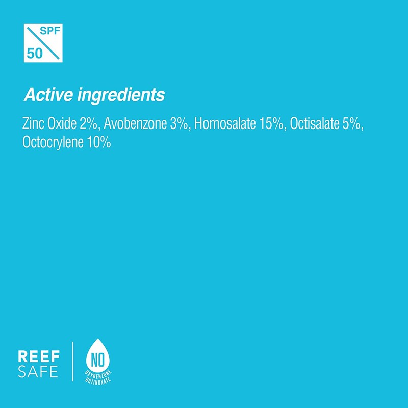 - Reef Safe, Water Resistant for 80 Minutes, Cruelty and Paraben Free, with no oxybenzone or Octinoxate