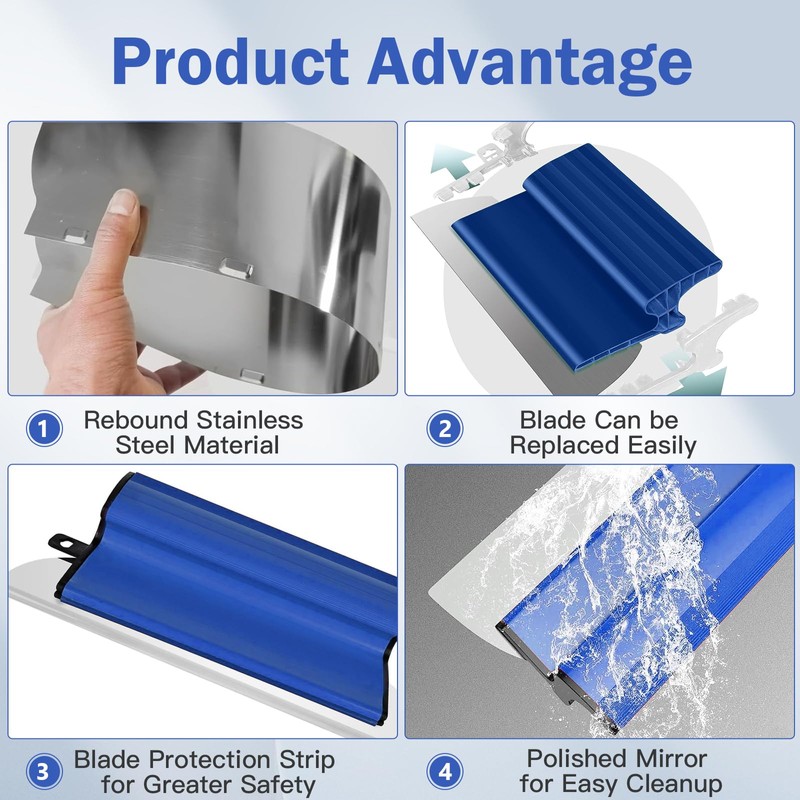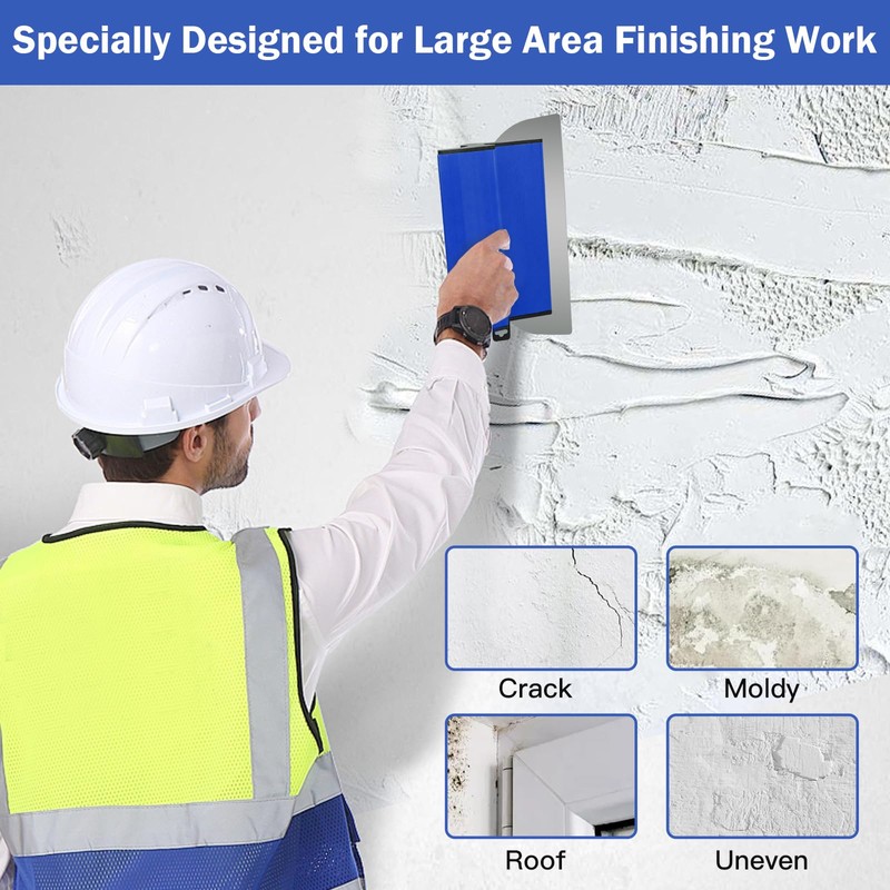 - Premium materials: made of high-quality, stainless steel and premium ABS for exceptional durability and rust resistance. Ideal for fillers, sealants, plaster, cement, scratch blocks and paint removal. Allows you to coat both small and large surfaces. For the application and further processing of decorative concrete wax layers, for smoothing projected coatings, for finishing and raking strips and plasterboard.