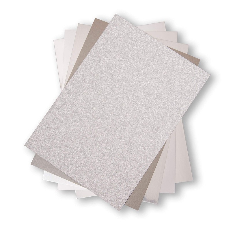 - 50 SHEETS - Perfect for any creative pursuit, our Opulent Cardstock pack provides 50 sheets of a variety of Silver coloured effects