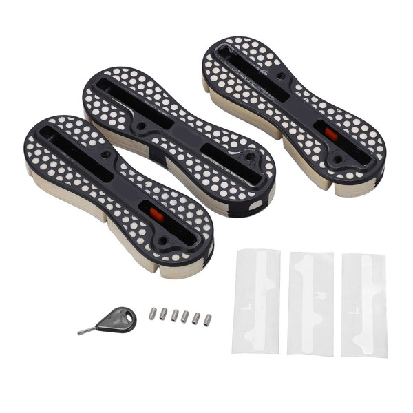 1、3PCS FIN BOXES: Including 3pcs surfboard fin boxes, with 8 shape round cup mesh grid design, which are easy to install and replace. 2、PVC MATERIAL: These surfing fin boxes are made of PVC material, resistant to corrosion and high temperature, and has a long service life. 3、GOOD ADAPTABILITY: Suitable for fin fusion in the first series and second series of fin control systems, which has good compatibility. 4、STANDARD DESIGN: Standard heat sink fin box, suitable for all standard substrates, compact in structure and convenient to operate. 5、OTHER ACCESSORIES: Equipped with screws, key and stickers, which are easy to install and replace, has strong practicability.