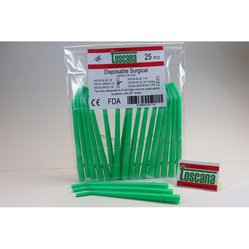 Surgical Aspirator Suction Tips Green 25 Pack 1/4'' Dental 1A5191 Toscana