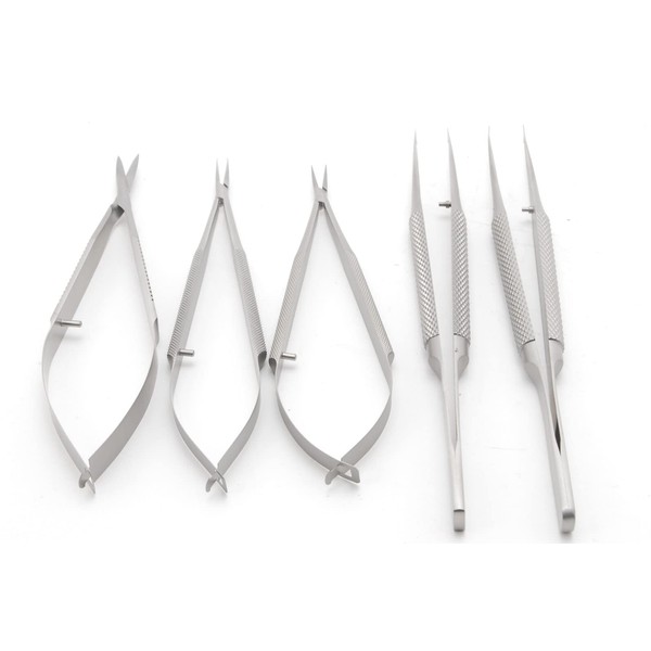 Surgical Practice Stainless Steel Precision Needle Set Micro Surgery Hand Holding Tool Pruning Blade Shears Tweezers Set of 5