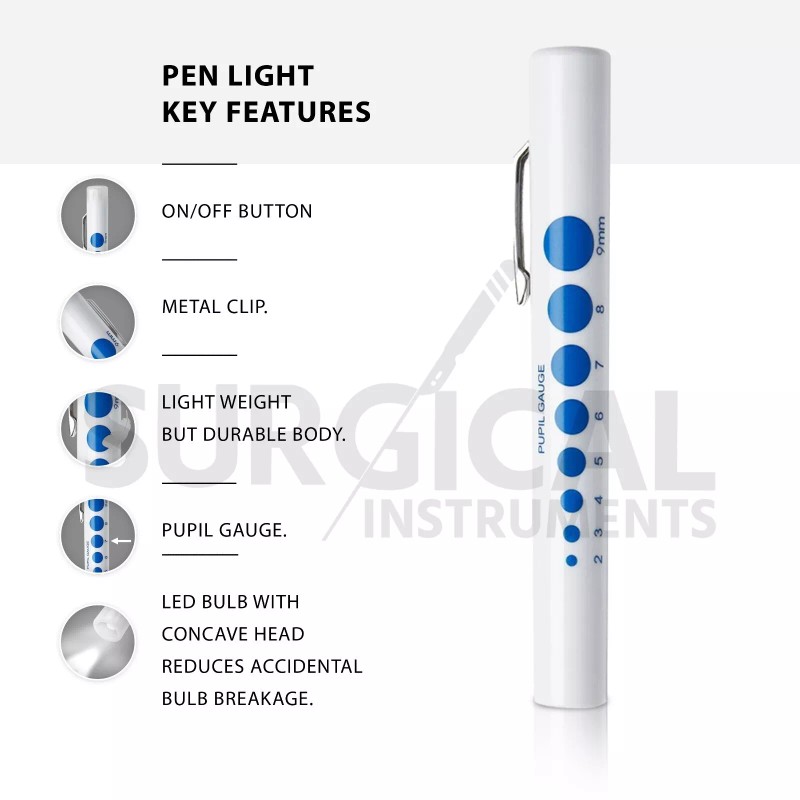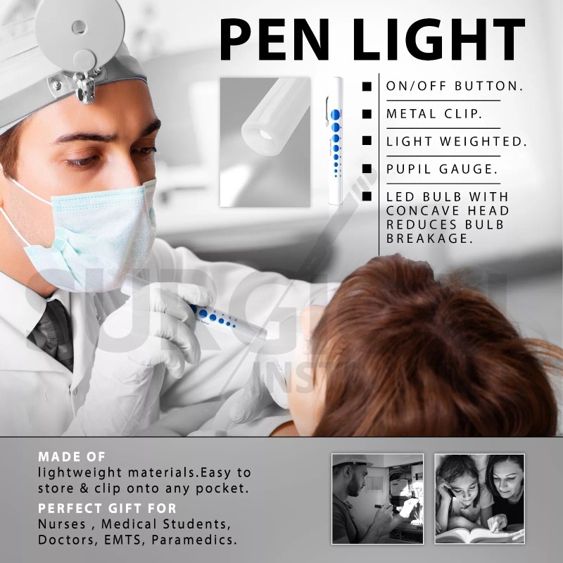 The Surginstruments Disposable LED Pen Lights are perfect for medical students, nurses, doctors, EMTs, paramedics, nursing students, home first aid kits and more. These emergency first aid diagnostic pen lights are important to have in medical office/hospital settings + on the go as well.