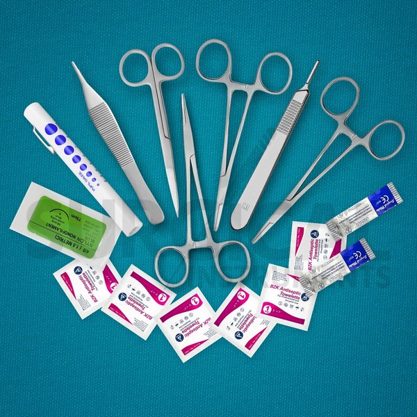✔ **19 Essential Medical Tools & Supplies** – A carefully curated selection of high-quality surgical and first aid components for trauma, wound care, and emergency treatment.
