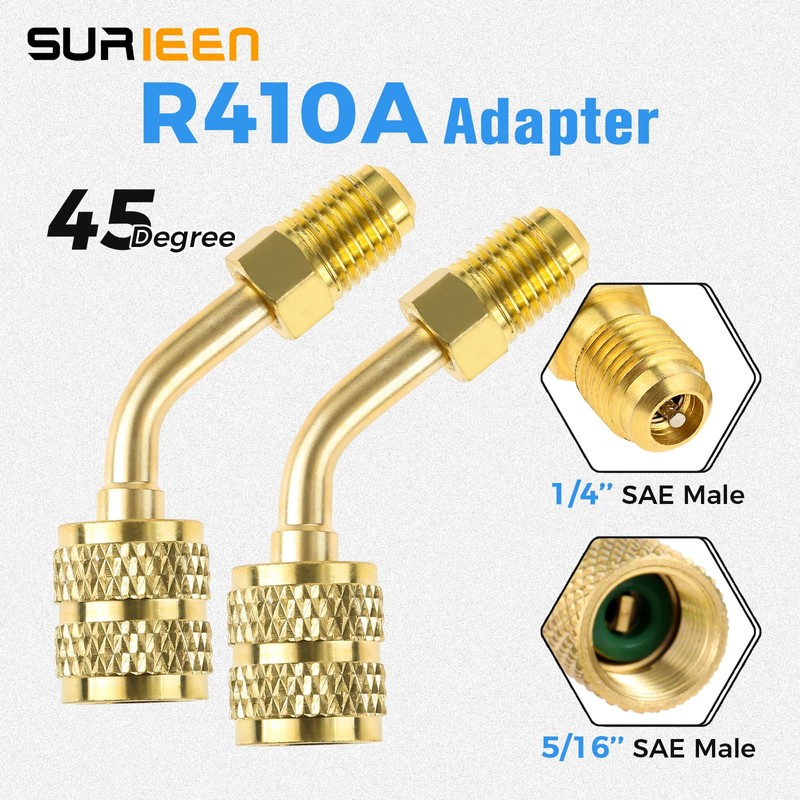 - 【R410a Adapters】 M-1/4" SAE to F-5/16" SAE adapter, which can converts the 5/16" SAE charging vacuum ports (R410A type) to accept 1/4" SAE gauge hose set, which is ideal for Home Air Conditioning HVAC, R410A air conditioner and other refrigeration equipment.
