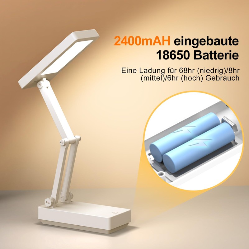 - Eingebaute 2400-mAh-Akku Dies ist eine tragbare Leselampe ber USB! Eingebautes 2400-mAh-Akku und 3-20 Stunden Beleuchtung (je nach Helligkeit). Nach dem Laden k?nnen Sie die batteriebetriebene Schreibtischlampe berall mitnehmen. Sie k?nnen dieses LED -Licht in Ihre Tasche/Schublade stauen oder dieses kleine Licht berall mitnehmen.