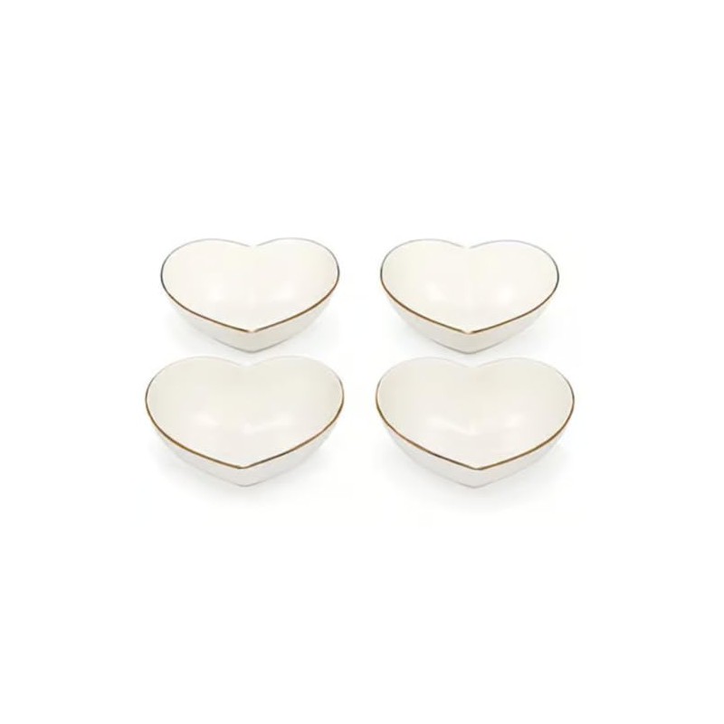- Elegant Design: These 4 heart-shaped ceramic bowls feature a sleek white glaze with a delicate gold trim for an elevated look.
