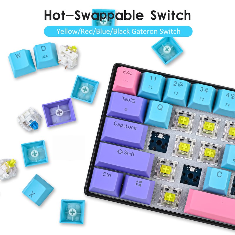 - 【Intercambiable en caliente】: la PCB de intercambio en caliente te permite reemplazar interruptores de 3 pines o 5 pines libremente, compatible con cualquier interruptor estilo MX (marcas como Cherry, Gateron y Kailh, etc.)