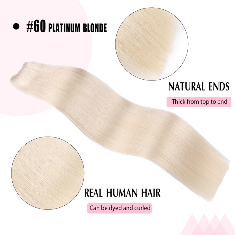 SURNEL Hair Weft Hair Extensions Human Hair 16 inch Color #60 Platinum Blonde Hair Bundles 80G Double Weft Sew in Hair Extensions Weave Human Hair(W#60,16)
