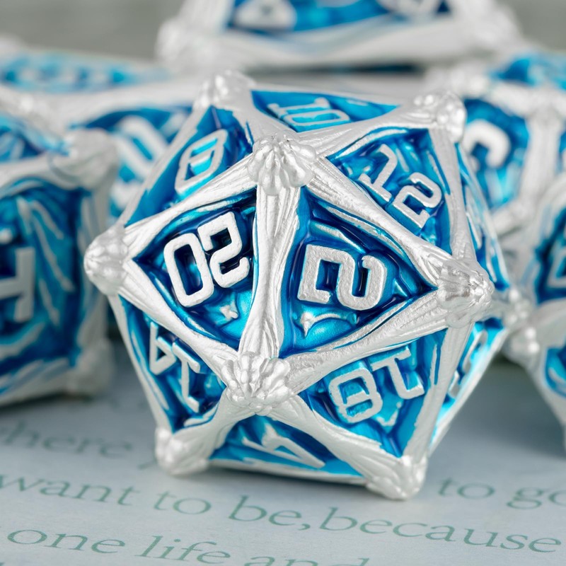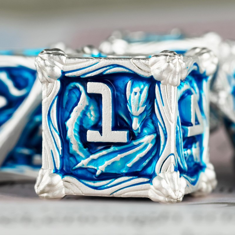 • 🌺Good Balance: The metal dice have a net weight of 6.42oz/182g and are made of zinc alloy. They are slightly heavier than ordinary metal dice. Metal dnd dice have a certain weight in the hand to ensure that the dice have a good balance and probability of each side. It's all the same.Christmas Gift Holiday Gift Dragon Dice Gift