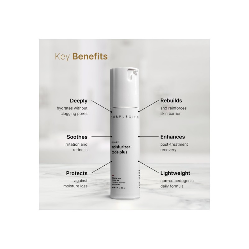 SURPLEXION Moisturizer Code Plus, Extreme Face Moisturizer, Post-Treatment Recovery Formula, Lightweight Non-Comedogenic, Daily and Post-Procedure Use