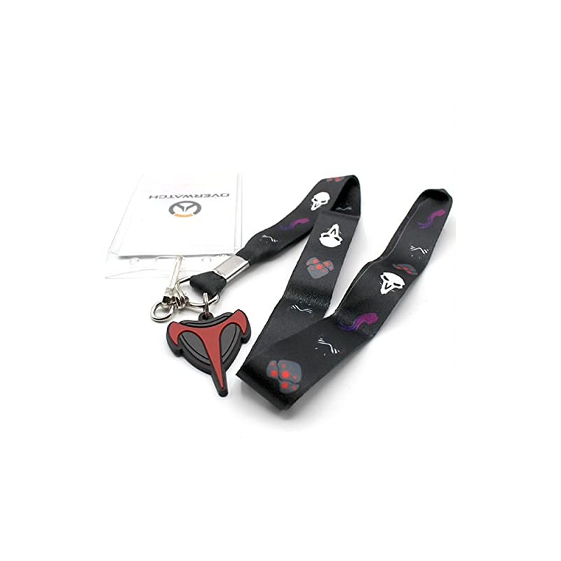 Surreal Entertainment Official Overwatch Designer Lanyard | Feat Talon Charm, Reaper, Widowmaker, and More | Includes Pass Badge ID Holder and Talon Charm,Black, Red