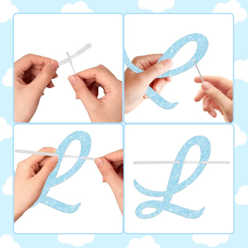 - High Quality: Little piece of heaven baby shower banner kit is made of glitter blue and white cardstock, shiny and sturdy.