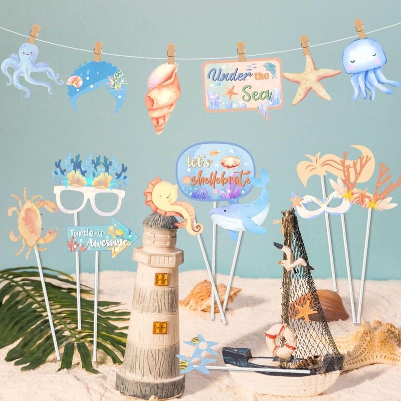 - DIY Under the Sea Theme Party The sea creature photo props can not only be used to take funny photos with your family and friends, they can also be put in vases as table centerpieces, or hung on a string with clips as banner decoration.