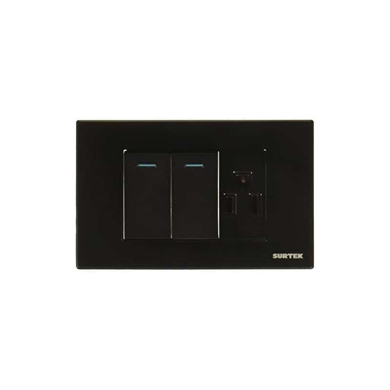 Surtek P626N Placa 2 Interruptor 1 contacto 1/3, línea Premium, color negro