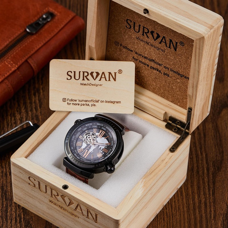 SURVAN WatchDesigner Automatic Watches for Men, Genuine Leather Strap Mechanical Watch, Men’s Skeleton Watch, Self Winding Watches for Men