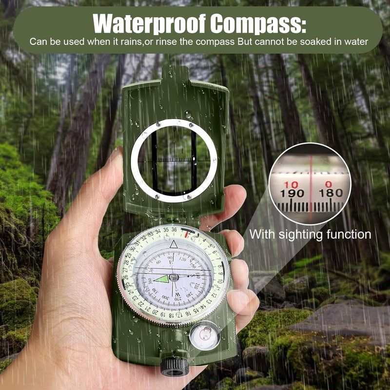 - Military Construction: The multifunctional compass is rugged and durable, military construction is waterproof and shockproof, can work in extreme weather conditions, suitable for camping, mountaineering, boating, exploring, hunting, hiking and other outdoor activities