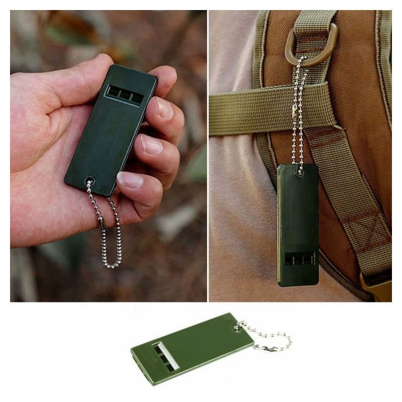 ✨ Designed for the modern go-getter, our Survival Whistle Keychain effortlessly clips onto your keys, backpack, or belt loop, ensuring it's always within reach. It's the subtle statement piece that whispers preparedness without shouting for attention.