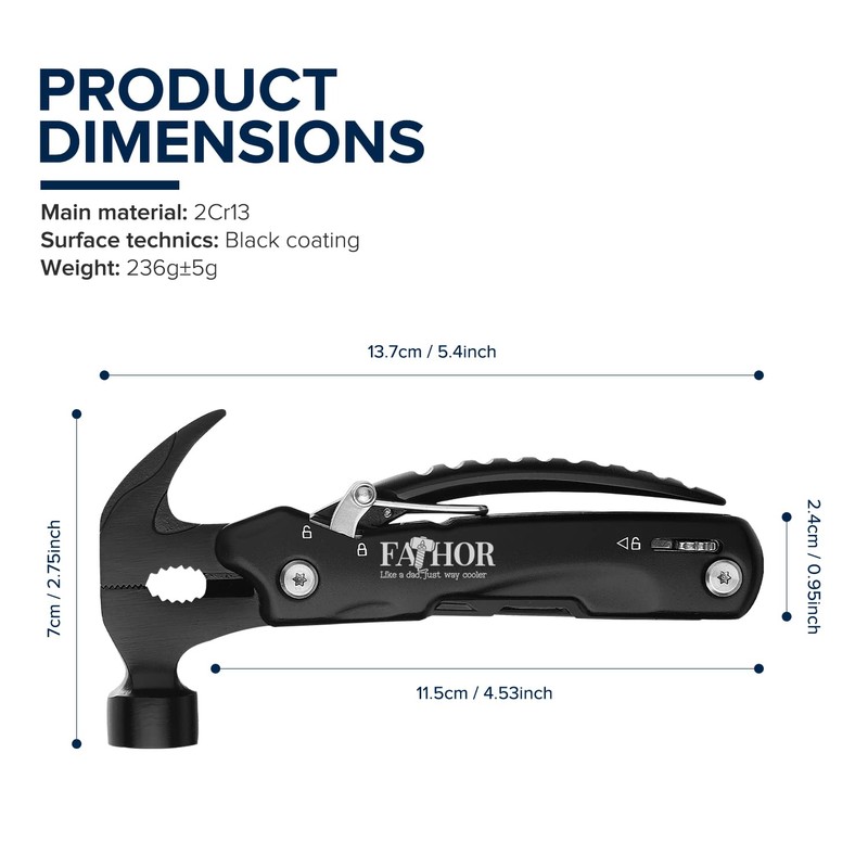 - 🔧 Compact Tool for Super Dads Packed with 12 tools for every DIY and repair job. A tactical multitool that’s perfect for dads who secretly think they’re superheroes. Hammer away, mighty Fathor! 🛠️