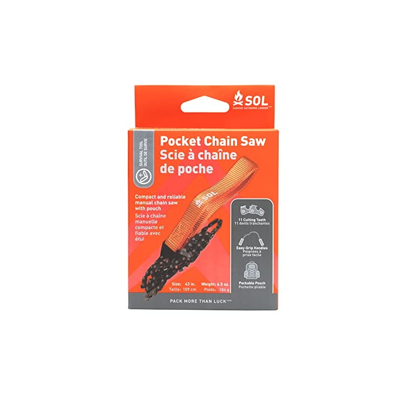 - Compact Manual Chain Saw: A 26-inch chain and 11 cutting-teeth that can easily pack down into your pack pocket