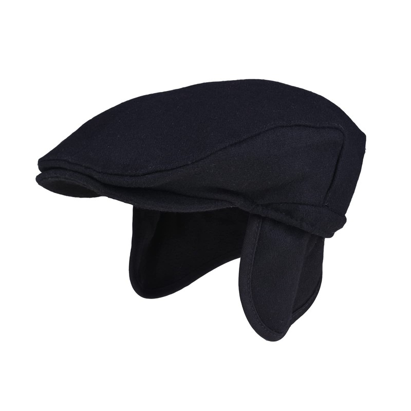 Surwiz Wool Flat Cap with Ear Flaps Winter Men Ivy Newsboy Hat Warm Outdoor Hunting Golf, Black, L(7 1/4-7 3/8)58-59CM
