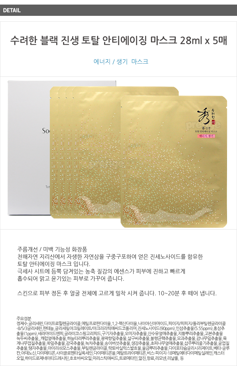 Suryeohan 수려한 진생 토탈 안티에이징 마스크팩 28mlx5매 시트 Beautiful Ginseng Total Anti-Aging Mask Pack 28ml x 5 Sheets