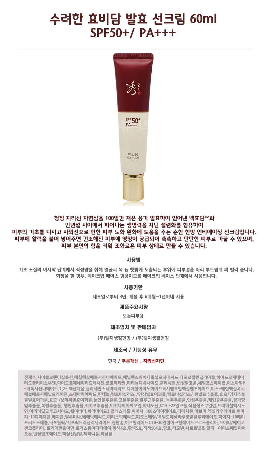 Suryeohan Hyobidam Fermented Sunscreen 60ml / 수려한 효비담 발효 선크림 60ml