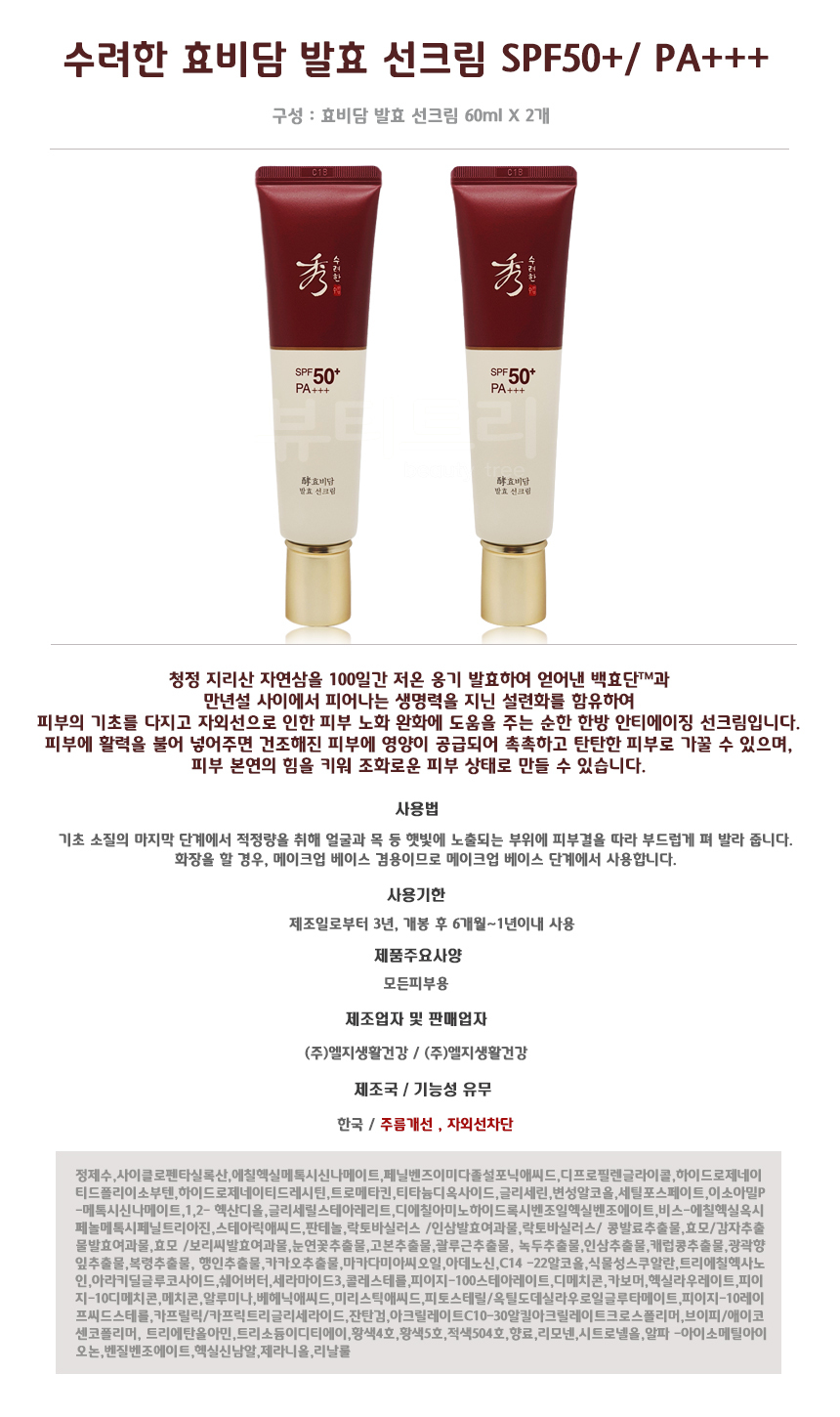 수려한 효비담 발효 선크림 60ml + 60ml