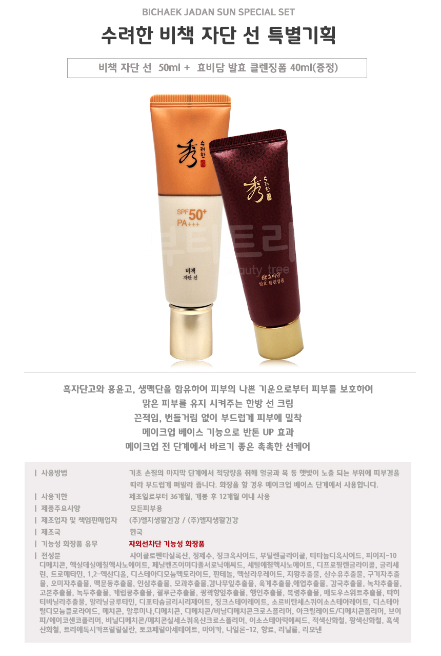 수려한 비책 자단 선크림 50ml + 클렌징폼 40ml 세트