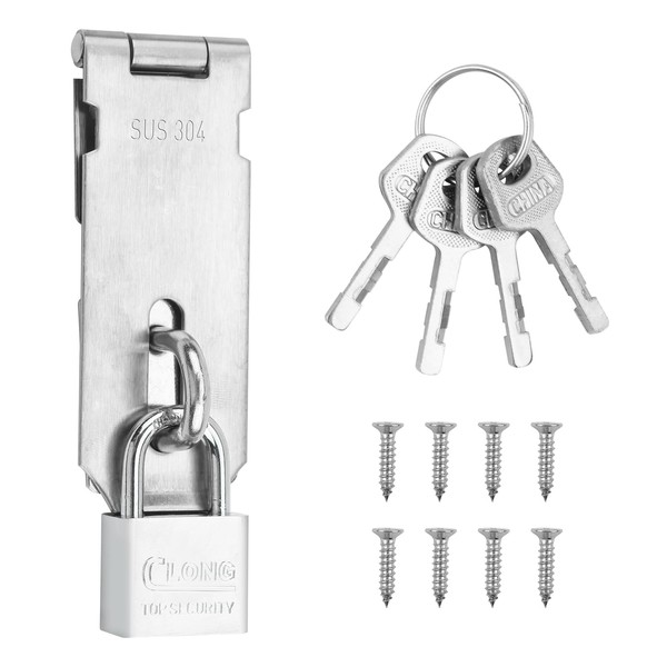 SUS304 Stainless Steel Shed Lock Hasp Door Lock with Padlock, 4-Inch Heavy Duty