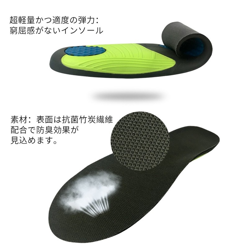 SUSCONG Insole, Anti-Fatigue, Breathable, Antibacterial, Odor Resistant, Arch Support, Shock Absorption, Ankle Pain, Plantar Fasciitis, Walking Sports, Insole, Size Adjustable, Unisex (M)